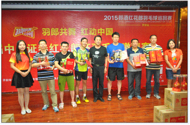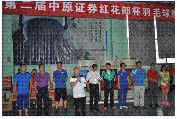 第二届中原证券“红花郎”杯羽毛球邀请赛于2015年6月27日在365羽毛球馆如期举行.本期比赛由中原证券股份有限公司开封大梁路营业部主办,开封红花郎为特约赞助经销商.
